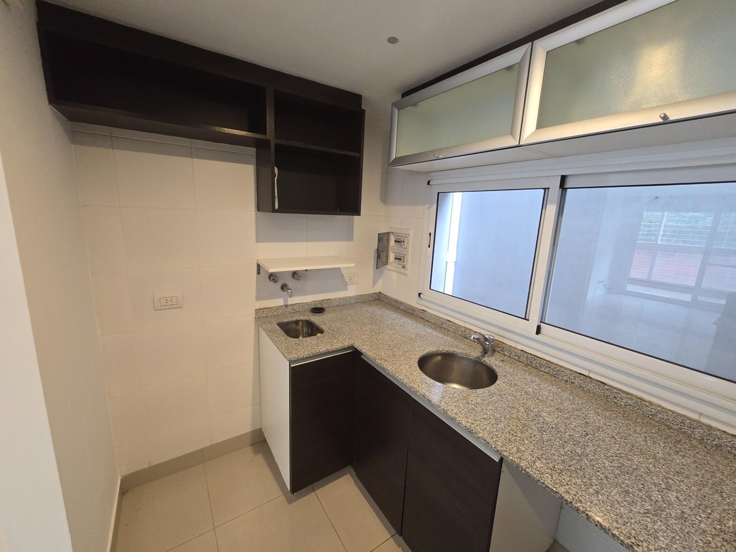 El departamento se encuentra al contrafrente, garantizando tranquilidad y luminosidad. Al ingresar, nos recibe un amplio y moderno living comedor con pisos de porcelanato, conectado a una cocina semi integrada con barra desayunadora, gran capacidad de guardado y lavadero incorporado.